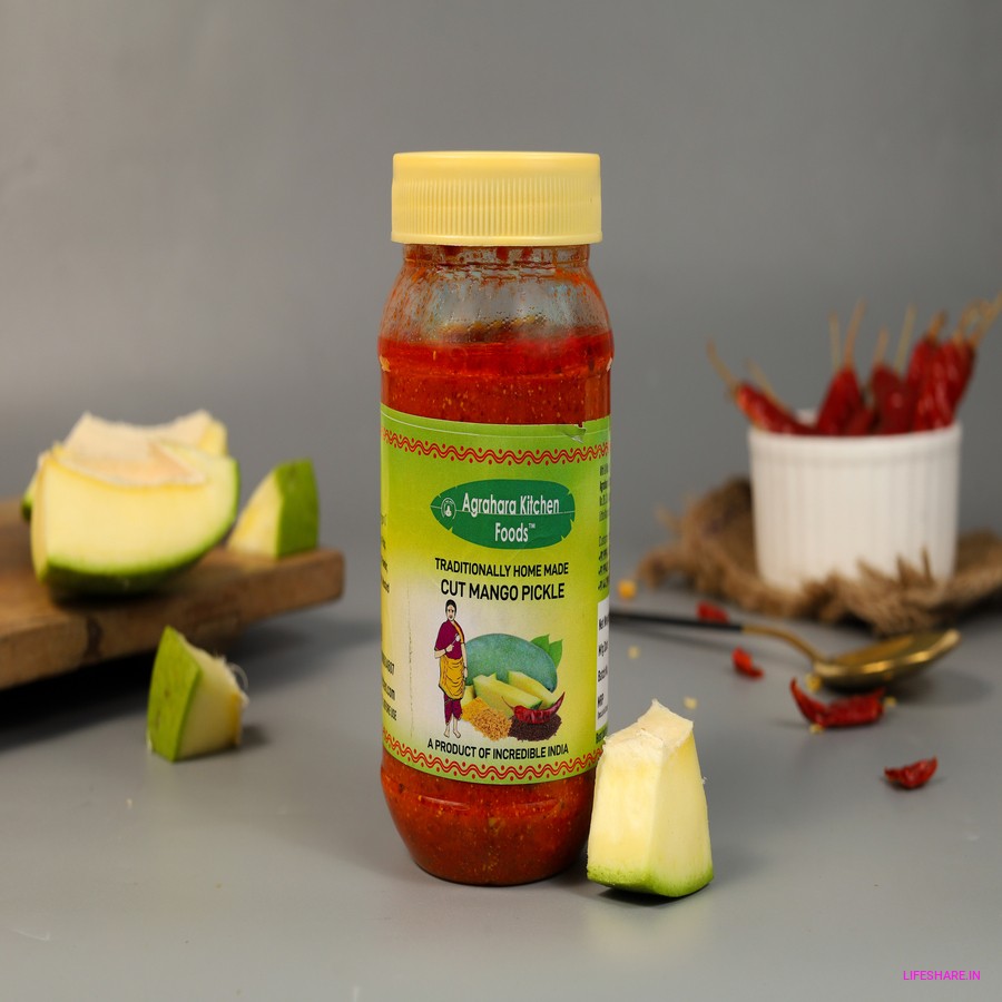 Introducing our delicious Cut Mango Pickle, a traditional Indian pickle made with tangy and spicy flavors. Made with high-quality mangoes and a blend of aromatic spices, this pickle is the perfect accompaniment to any meal. Enjoy the taste of homemade pickle with every bite. Add a burst of flavor to your dishes with our Cut Mango Pickle