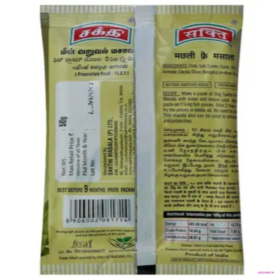 Sakthi Fish Fry Masala is an elaborate blend of hand-picked spices that can make a sumptuous fish curry. Easy to cook finger licking good, a delicious fish curry tastes best with steamed rice, though also enjoyed with paranthas or dosa. Buy Fish Fry Masala online now!