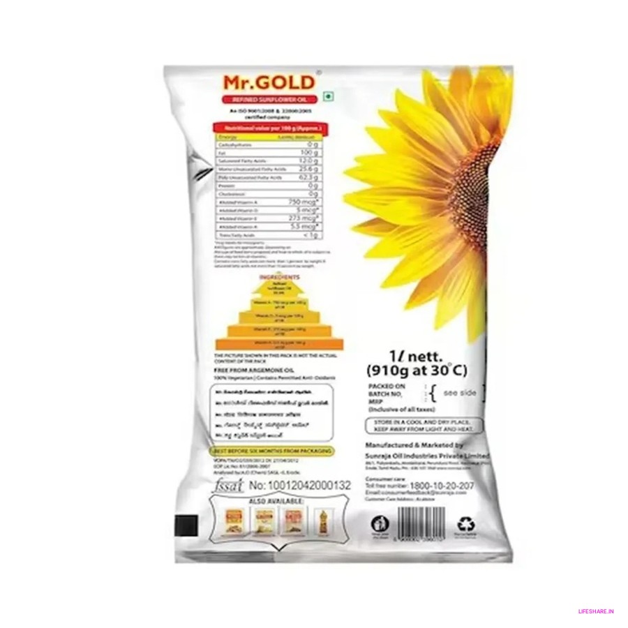 Mr. Gold Refined Sunflower Oil - Pouch 1lr