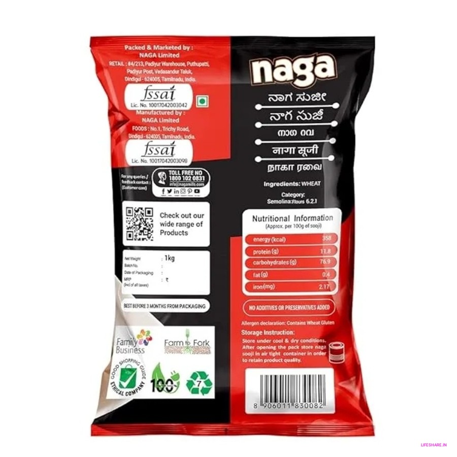 Naga Sooji is a coarsely ground wheat semolina that adds a distinctive texture and flavor to a wide array of dishes. Naga Sooji has earned its place in kitchens worldwide due to its adaptability and ease of preparation.