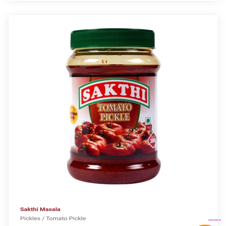 Sakthi Tomato Pickle is a traditional South Indian delicacy crafted with the finest sun-ripened tomatoes and a perfect blend of authentic spices. Bursting with tangy, sweet, and spicy flavors, this pickle adds a punch of taste to every meal. Carefully prepared using age-old recipes, Sakthi Tomato Pickle retains the natural freshness and nutritional goodness of tomatoes while delivering a rich, bold taste that complements rice, chapati, paratha, dosa, and idli perfectly.
