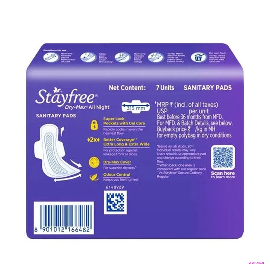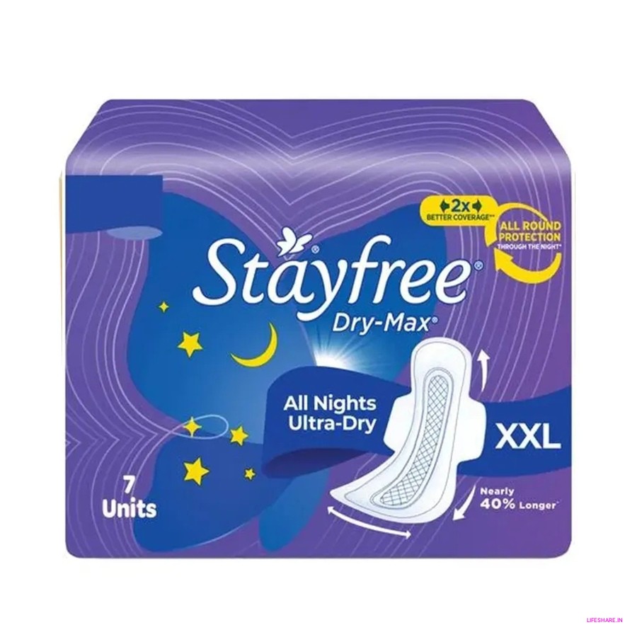 Stayfree Dry Max All Night Sanitary Pads with Wings - XXL are perfect for a worry-free night's sleep. With advanced absorbency and wings for added security, these pads ensure maximum protection against leaks, keeping you dry and comfortable all night long.