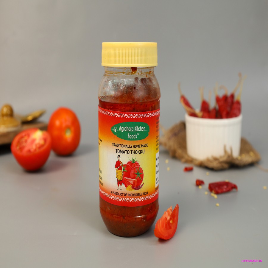 Introducing our delicious Tomato Thokku pickle, made with ripe tomatoes, aromatic spices, and a hint of tangy tamarind. This traditional South Indian recipe is a perfect combination of sweet, spicy, and tangy flavors that will tantalize your taste buds. Our Tomato Thokku is made with high-quality ingredients and is packed with the